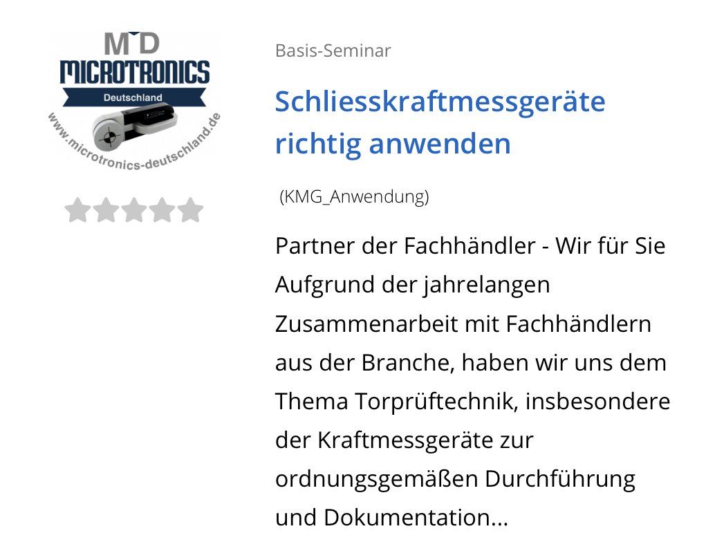 Damit auch Sie die nötige Sachkunde vermittelt bekommen, führen wir Sie in diesem Seminar durch die wesentlichen Punkte, die Sie auch zukünftig für die erfolgreiche Ausführung von Prüfung- und Wartungsarbeiten an Toranlagen benötigen.